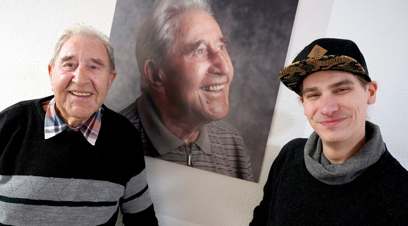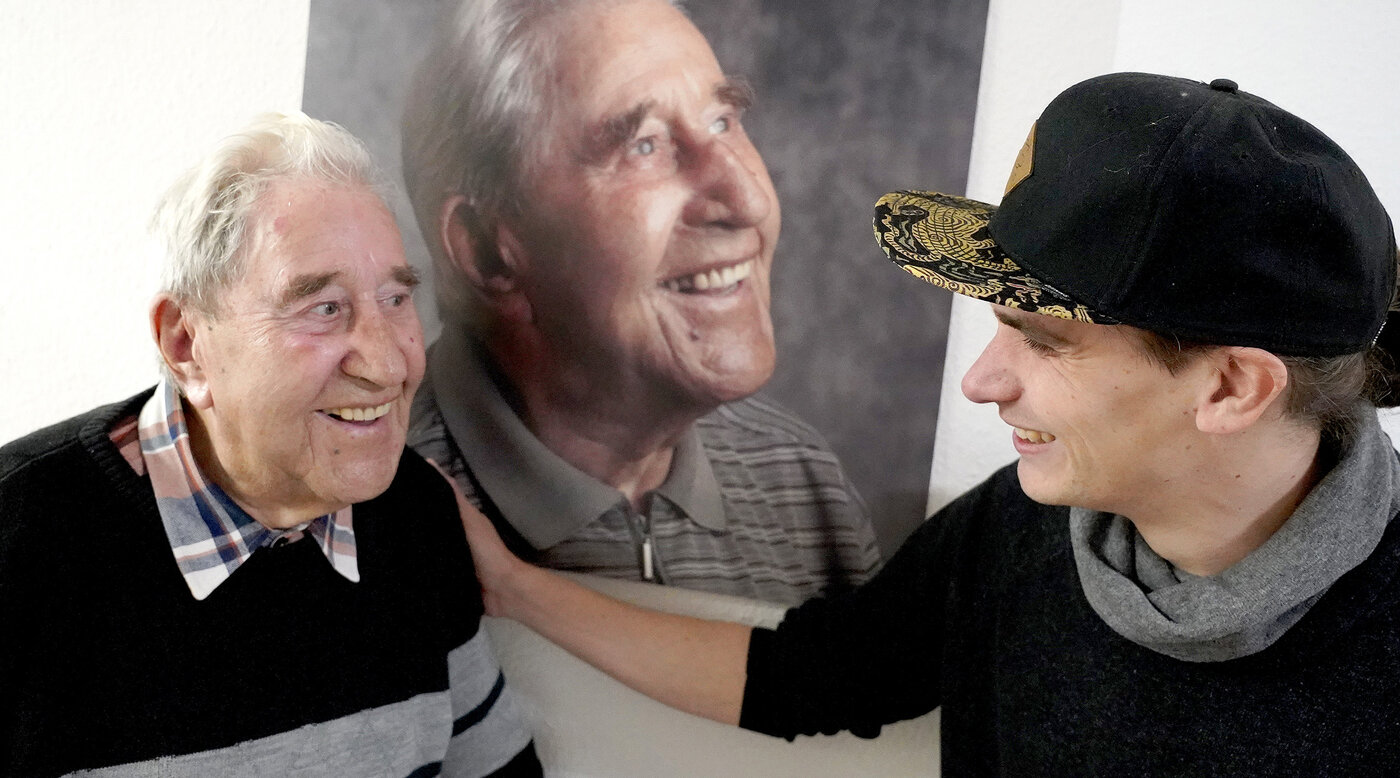 BAD ZWISCHENAHN/ROSTRUP. Welch ein wunderbares Wiedersehen: Fast auf den Tag genau zwei Jahre ist’s nun her, dass der Rostruper Fotograf Johannes Bichmann die Bewohner*innen in der AWO Einrichtung am Zwischenahner Meer „zum Leuchten“ gebracht hat. Jetzt war er wieder vor Ort und traf dort auch auf Arkadiusz Lewandowski. Der 99-Jährige war einst Model für Bichmann, sein strahlendes Portrait hängt noch immer auf dem Flur des Erdgeschosses.