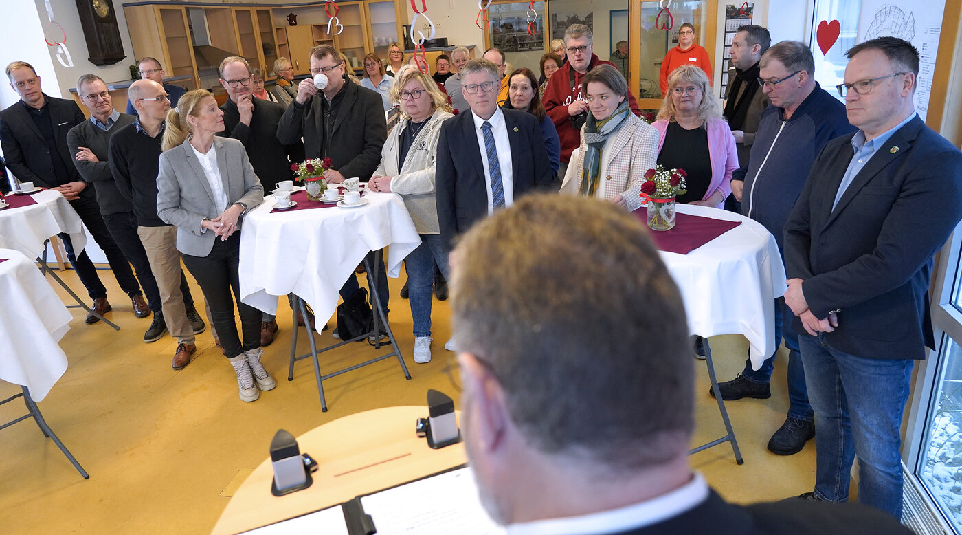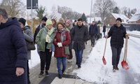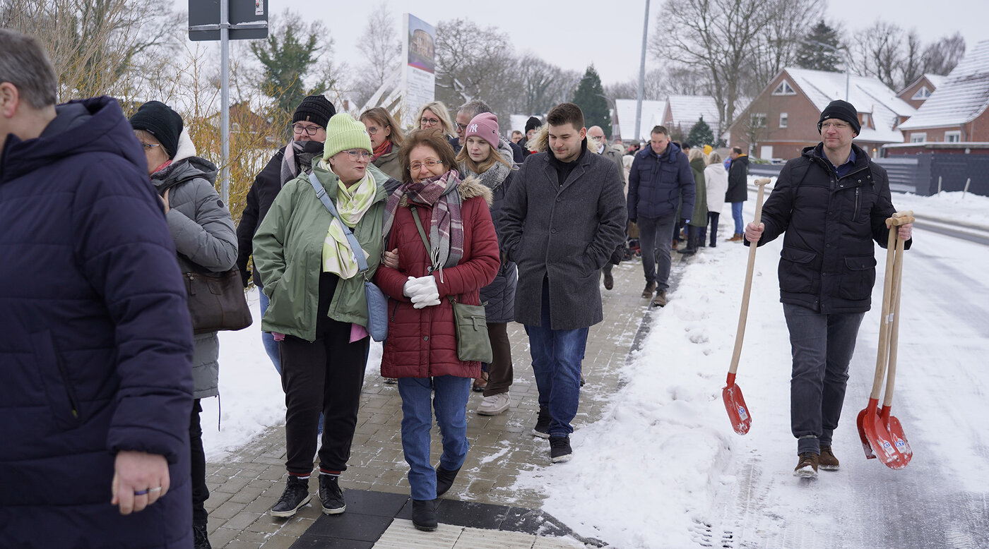 Spaziergang: Warme Worte, Suppen und Käffchen gab’s im Hermann-Bontjer-Haus, danach spazierten Bewohner*innen wie Mitarbeitende und alle weiteren Gäste schließlich zum nur wenige Meter entfernten Baugrundstück.