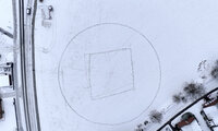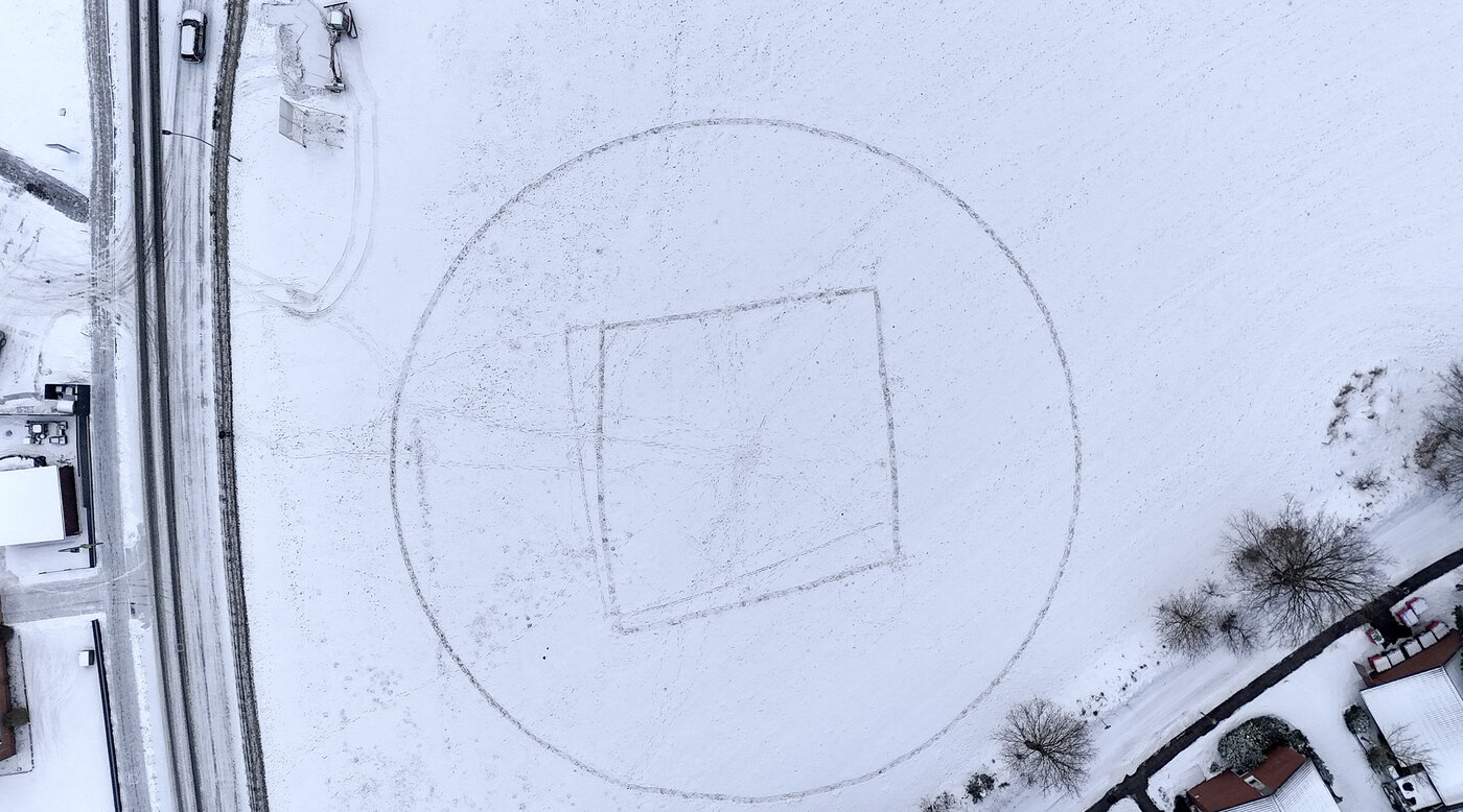 Luftbild: Mit Schaufeln wurden kurzerhand die tatsächlichen Ausmaße und der Standort der künftigen Einrichtung aus dem Schnee gehoben.