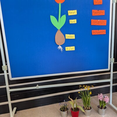 Die erste Feier wurde ausgerichtet und dort wurden verschiedene Frühblüher und wie solche Zwiebelpflanzen aufgebaut sind gezeigt. Außerdem haben die Kinder die Schulblumen umgetopft. Darüber hinaus gab es Lieder zum Mitsingen und Tipps für tolle Frühlingsbilder.