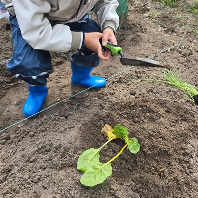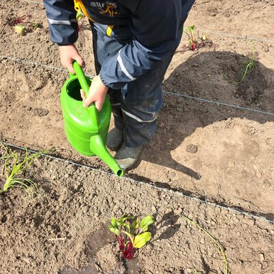 Wir haben unseren Acker neu bepflanzt. Die Kinder waren sehr fleißig und haben dabei verschiedene Gemüsesorten kennengelernt. Als alle Pflanzen eingepflanzt waren, haben die Kinder fleißig mit ihren Gießkannen gegossen.